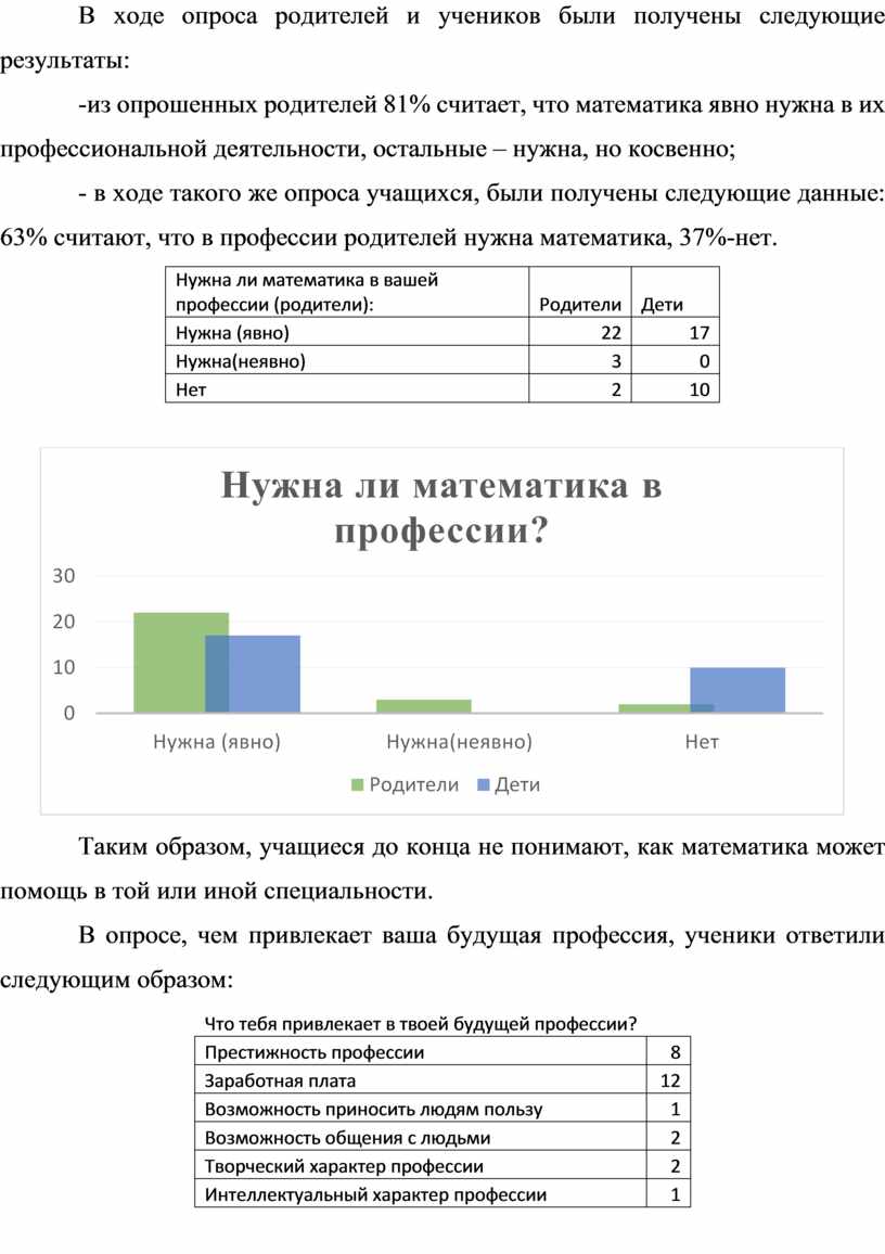 1) Провести опрос среди родителей и учащихся для выявления необходимости математики в профессиях.