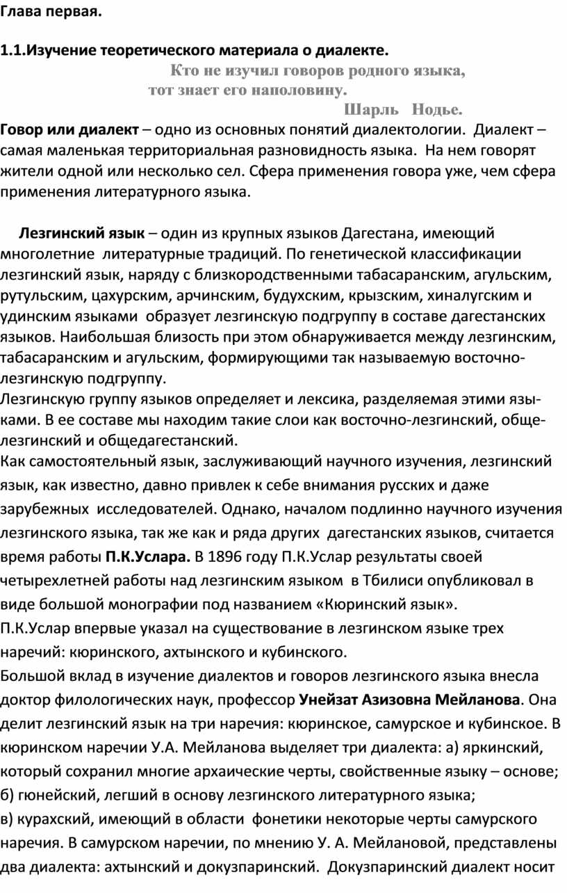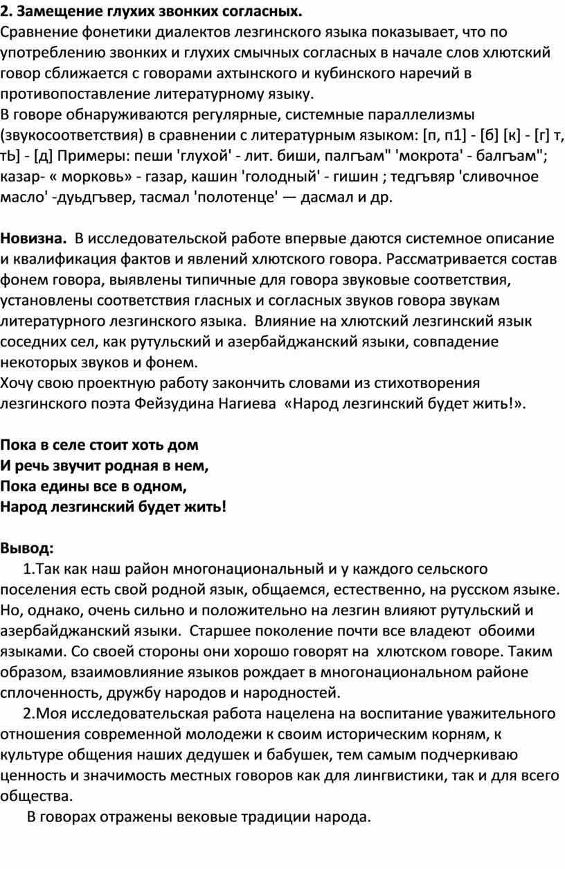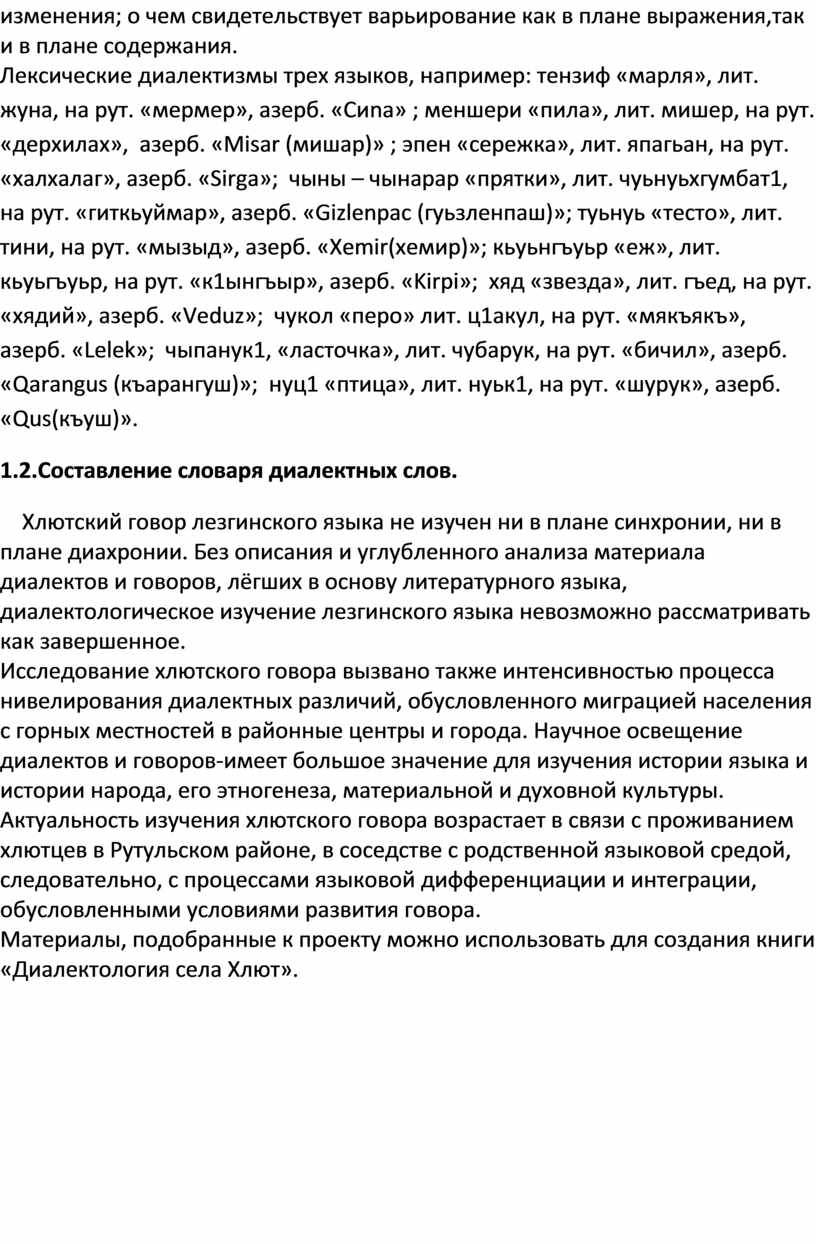 работе изучения лезгинского языка нашего села. Исследование диалектов – это