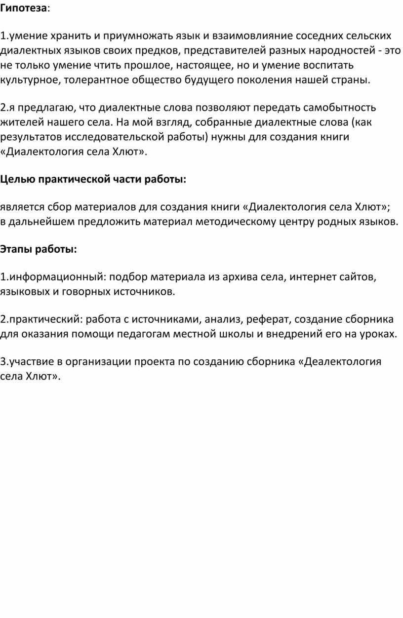 2.я предлагаю, что диалектные слова позволяют передать самобытность жителей нашего села. На мой взгляд, собранные диалектные слова (как результатов исследовательской работы) нужны для создания книги «Диалектология села Хлют».