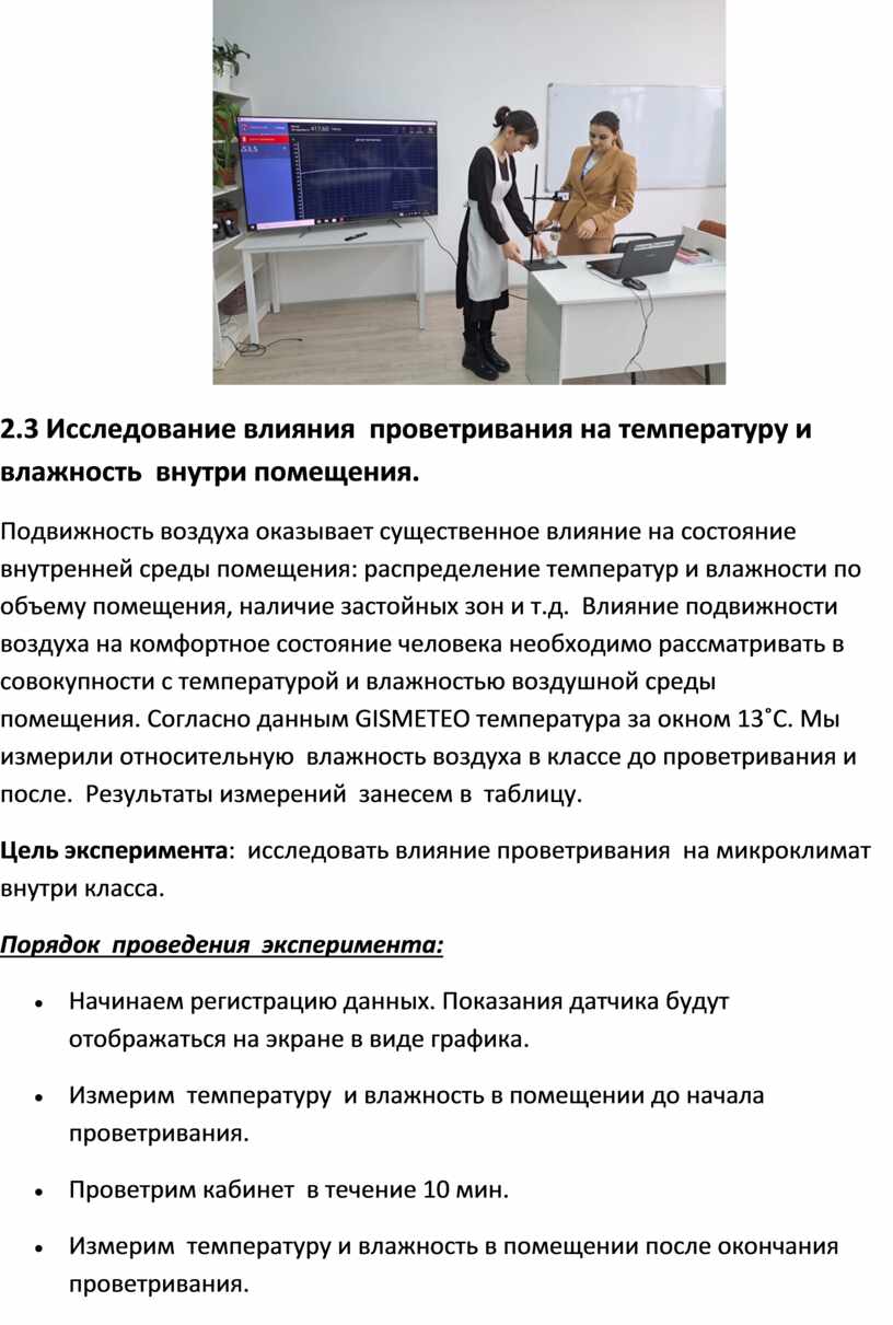 Цель эксперимента: исследовать влияние проветривания на микроклимат внутри класса.