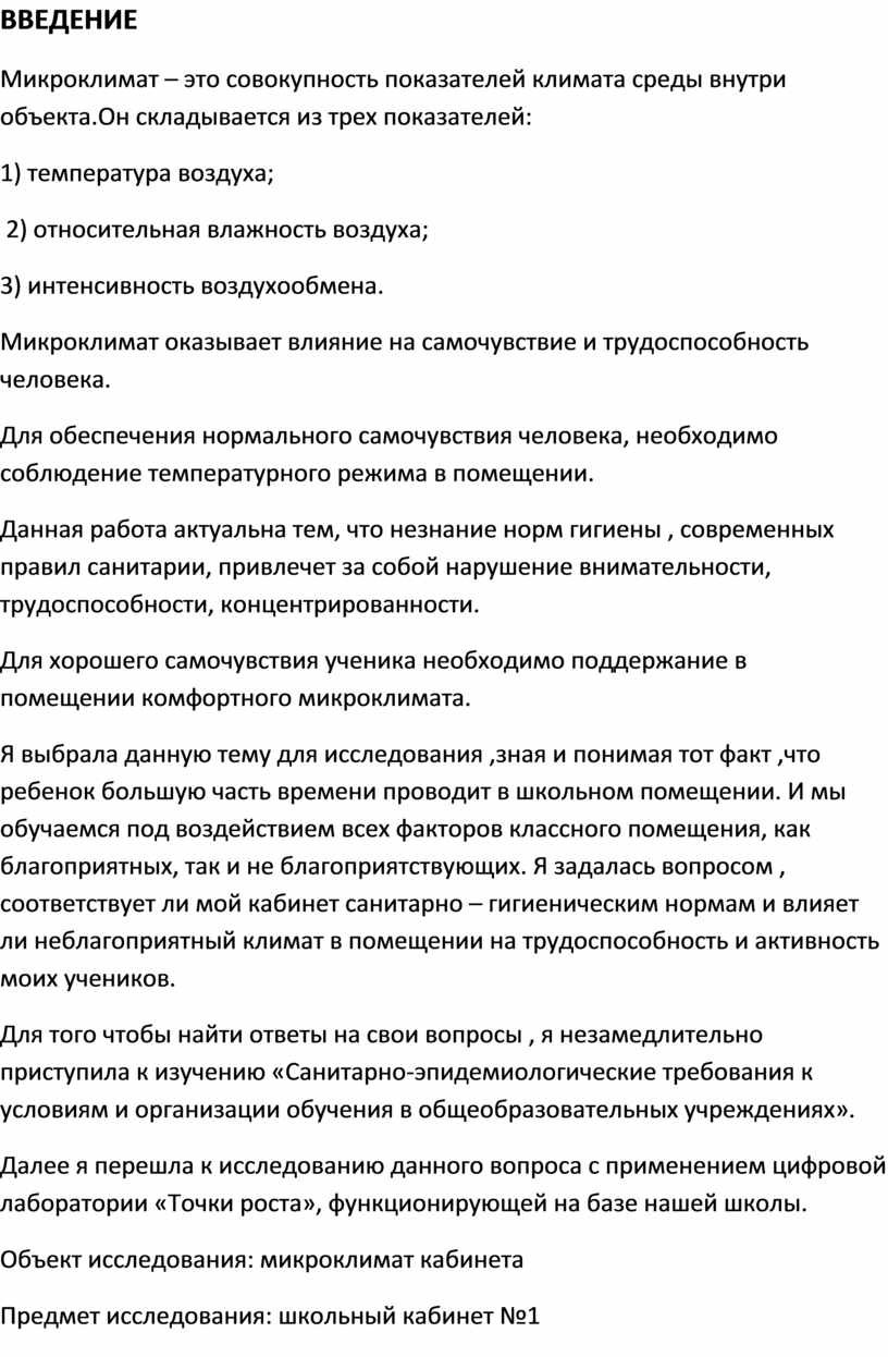 на тему: «Влияние микроклимата в кабинете на трудоспособность учеников»