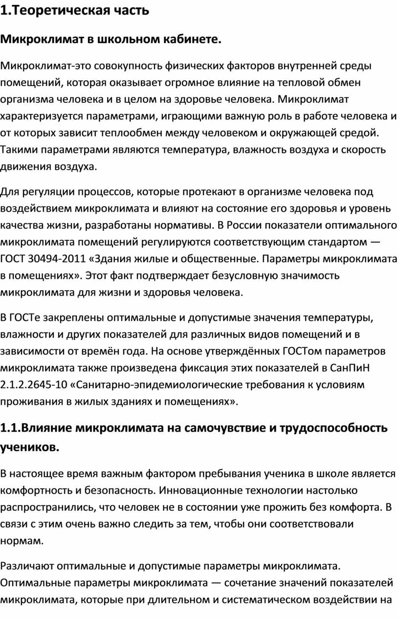 1.1.Влияние микроклимата на самочувствие и трудоспособность учеников.