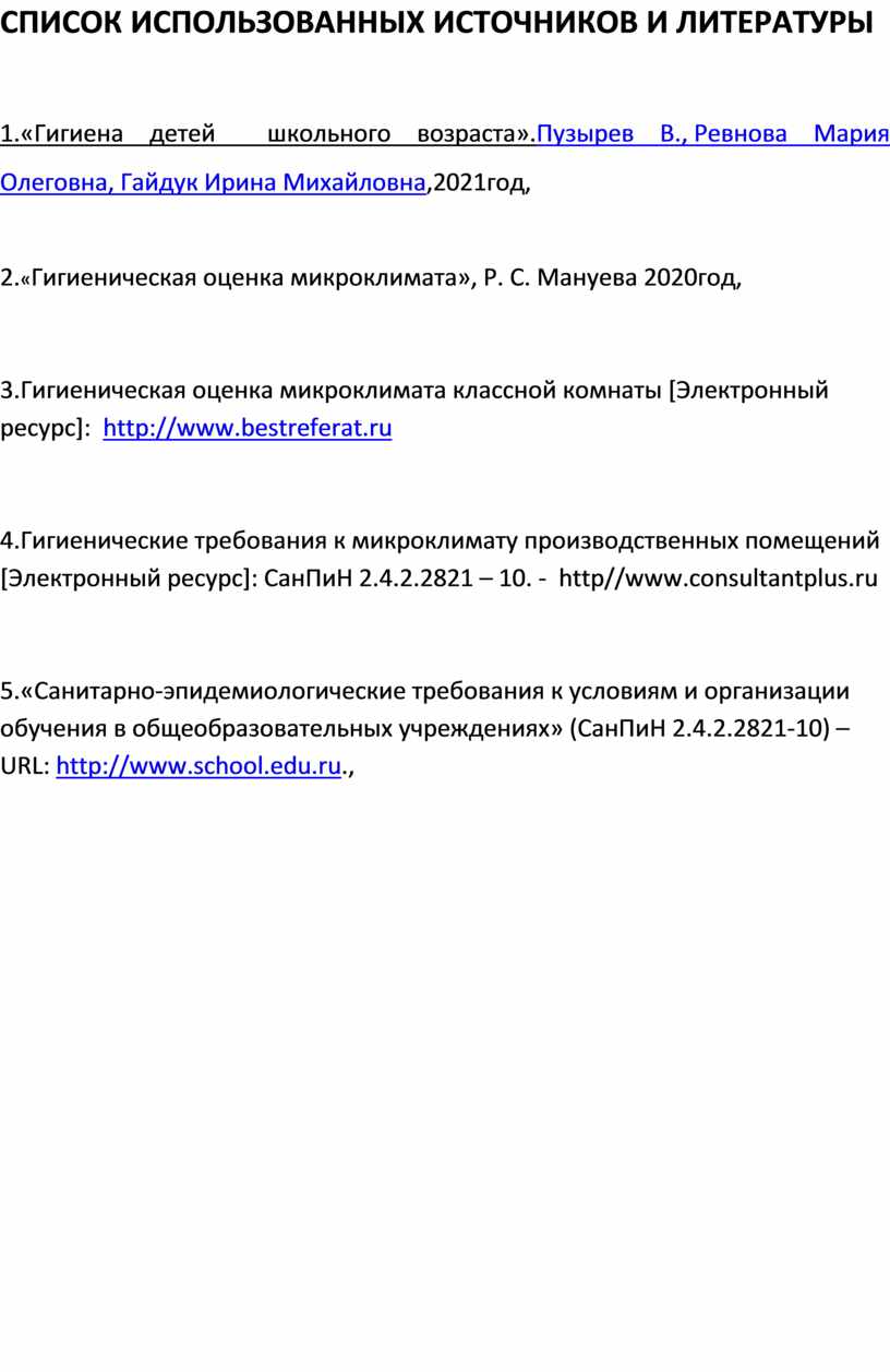 3.Гигиеническая оценка микроклимата классной комнаты [Электронный ресурс]: http://www.bestreferat.ru