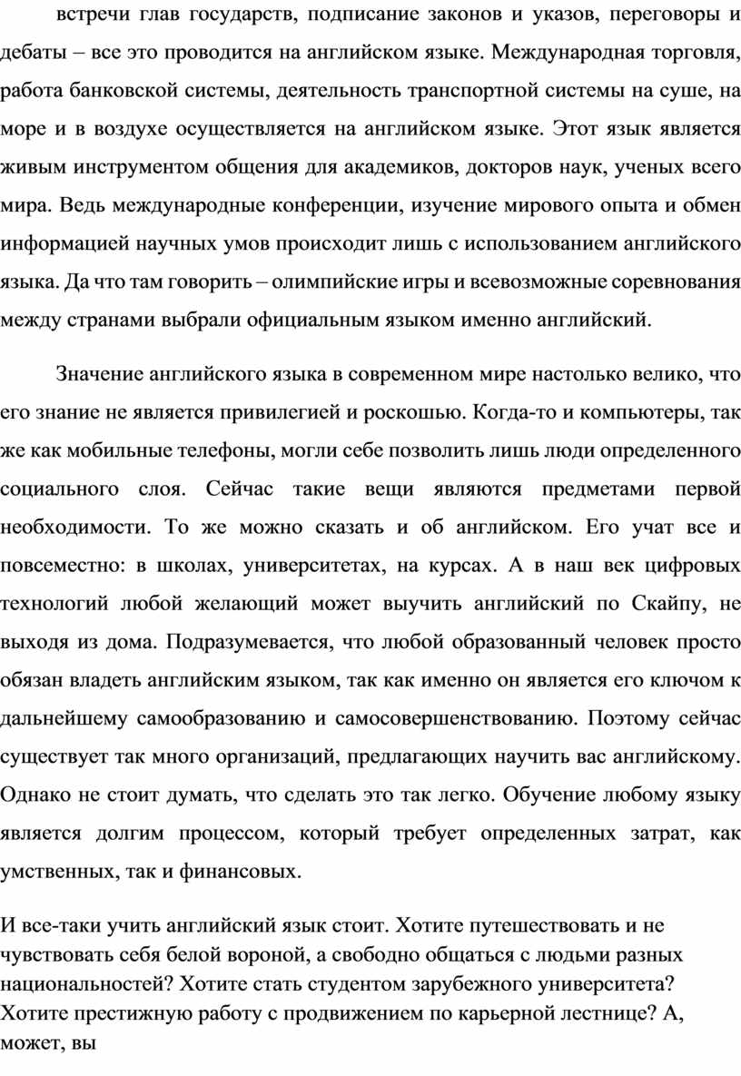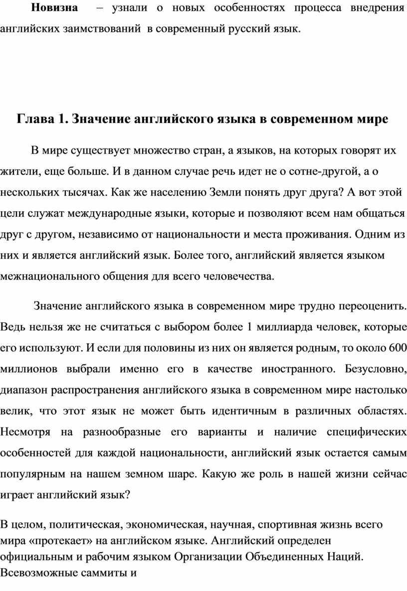 Глава 1. Значение английского языка в современном мире