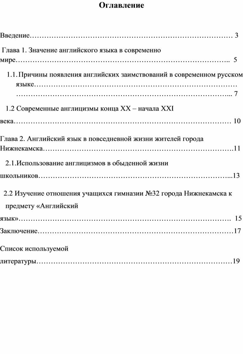 Глава 2. Английский язык в повседневной жизни жителей города Нижнекамска…………………………………………………………………….11