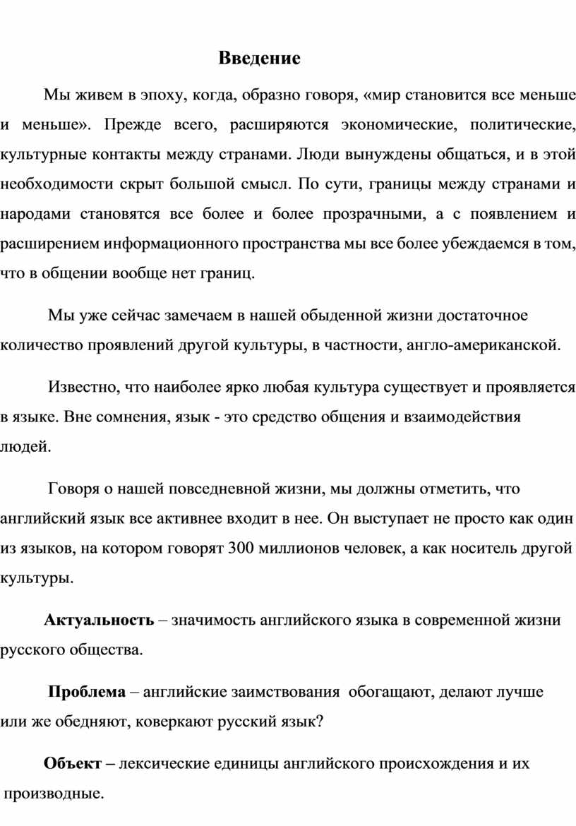 Предмет – исследование английских заимствований в современном русском языке последних десятилетий.