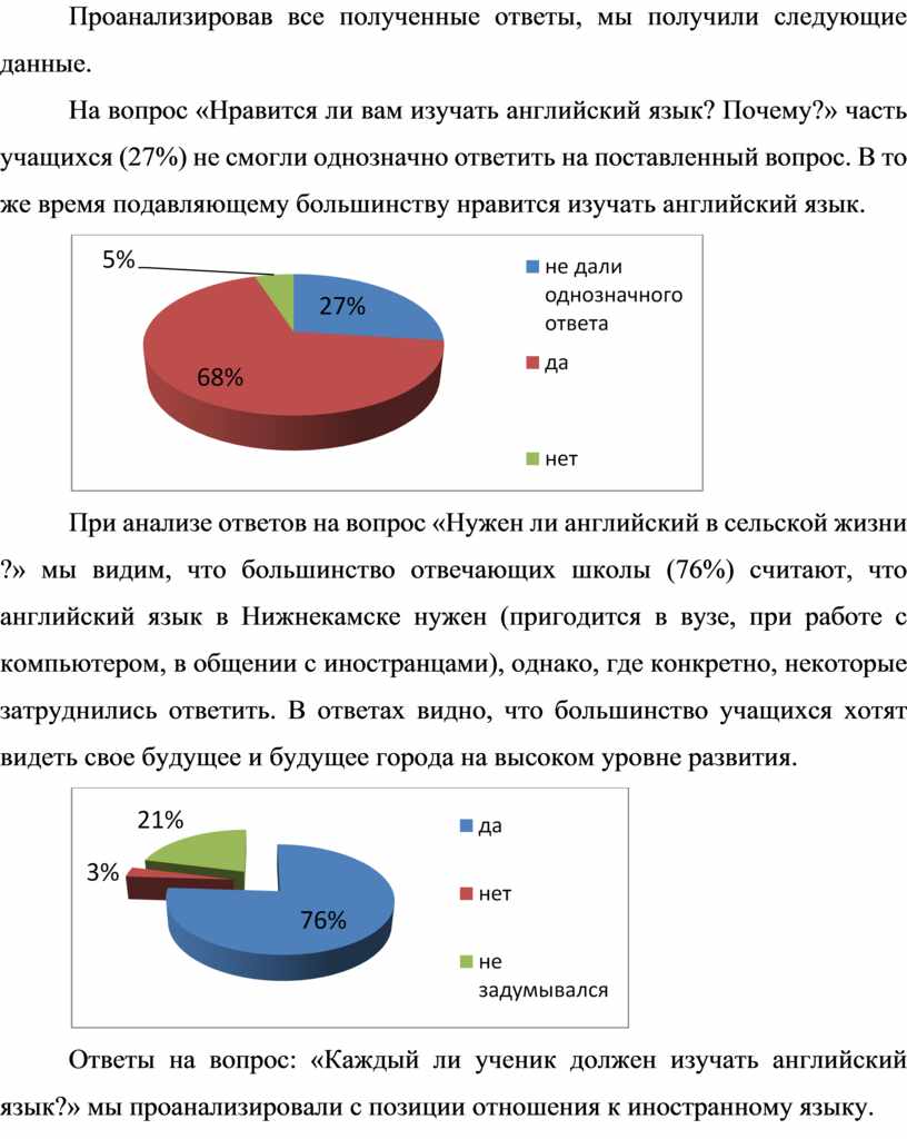 Ответы на вопрос: «Каждый ли ученик должен изучать английский язык?» мы проанализировали с позиции отношения к иностранному языку.