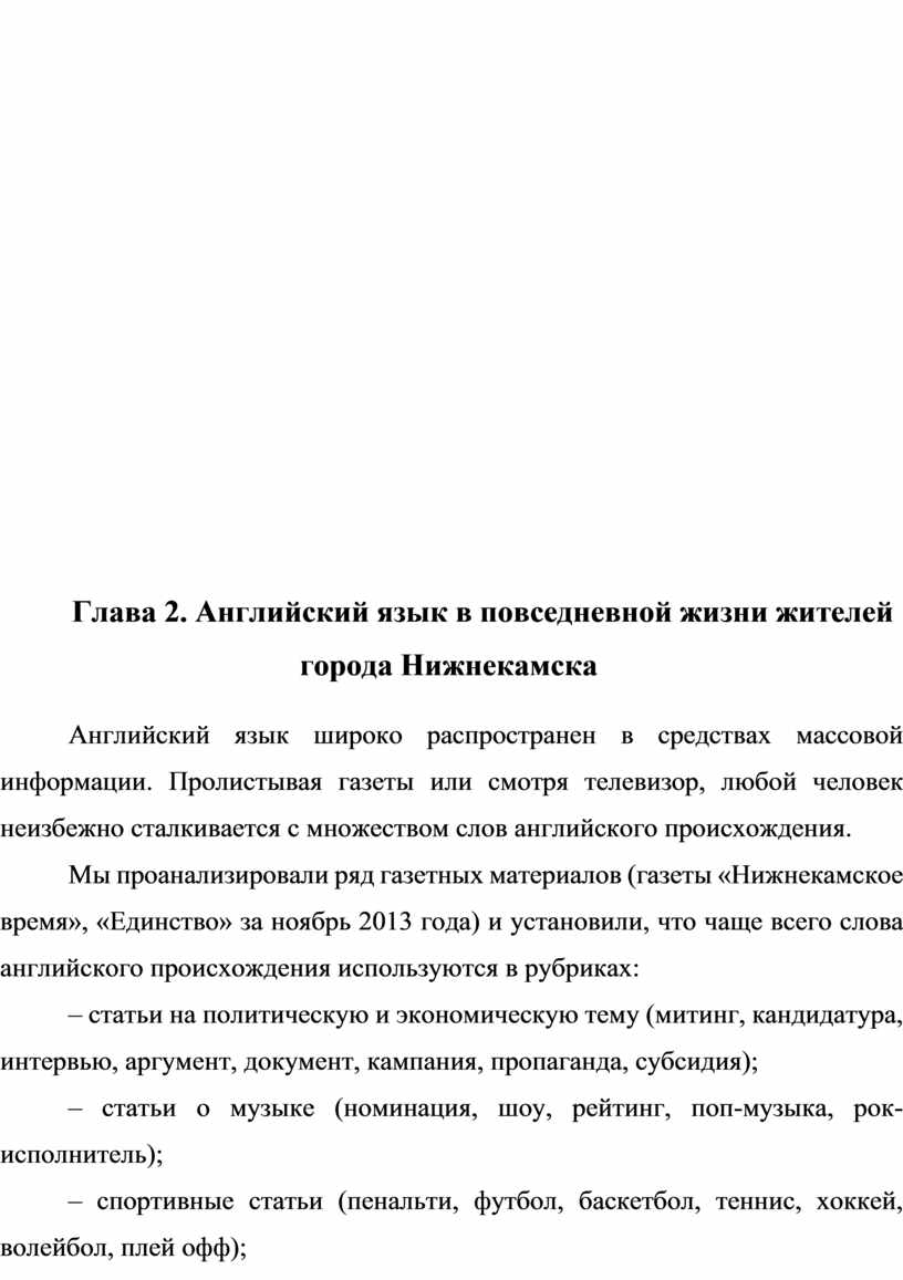 Глава 2. Английский язык в повседневной жизни жителей города Нижнекамска