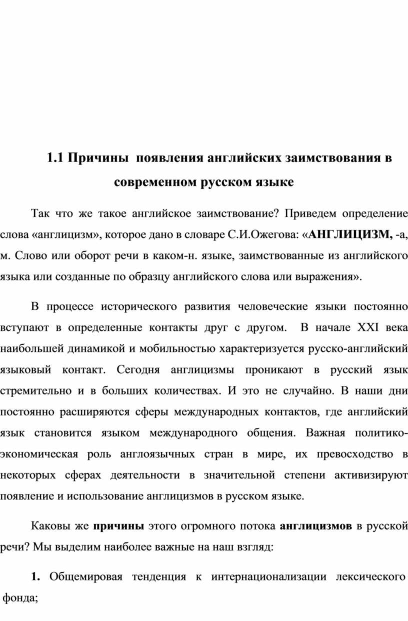 1.1 Причины появления английских заимствования в современном русском языке