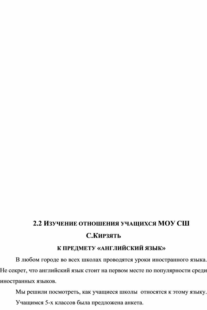 2.2 Изучение отношения учащихся МОУ СШ С.Кирзять