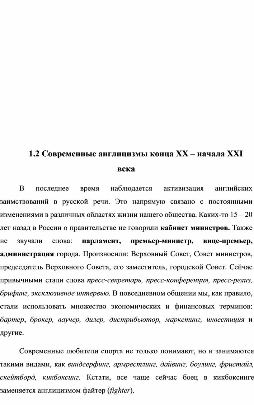 1.2 Современные англицизмы конца XX – начала ХХI века