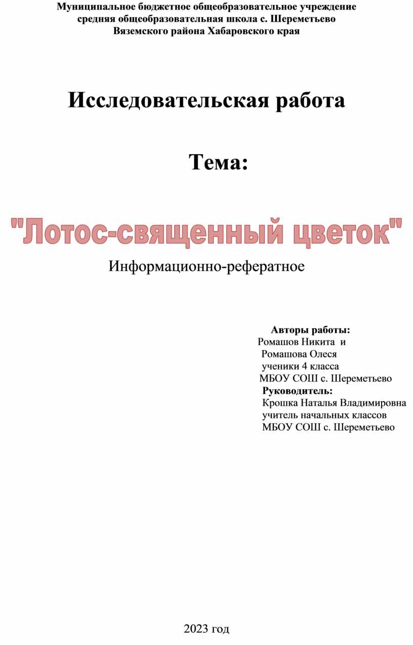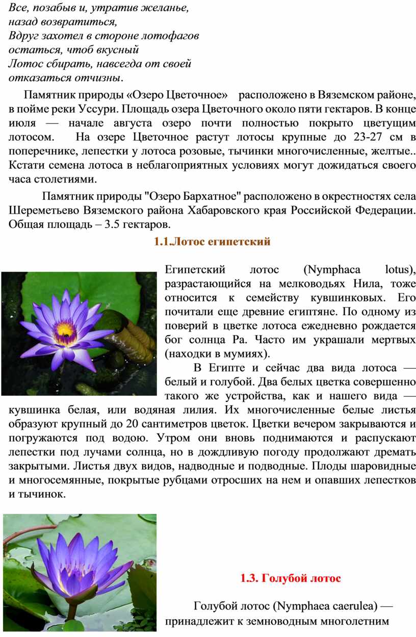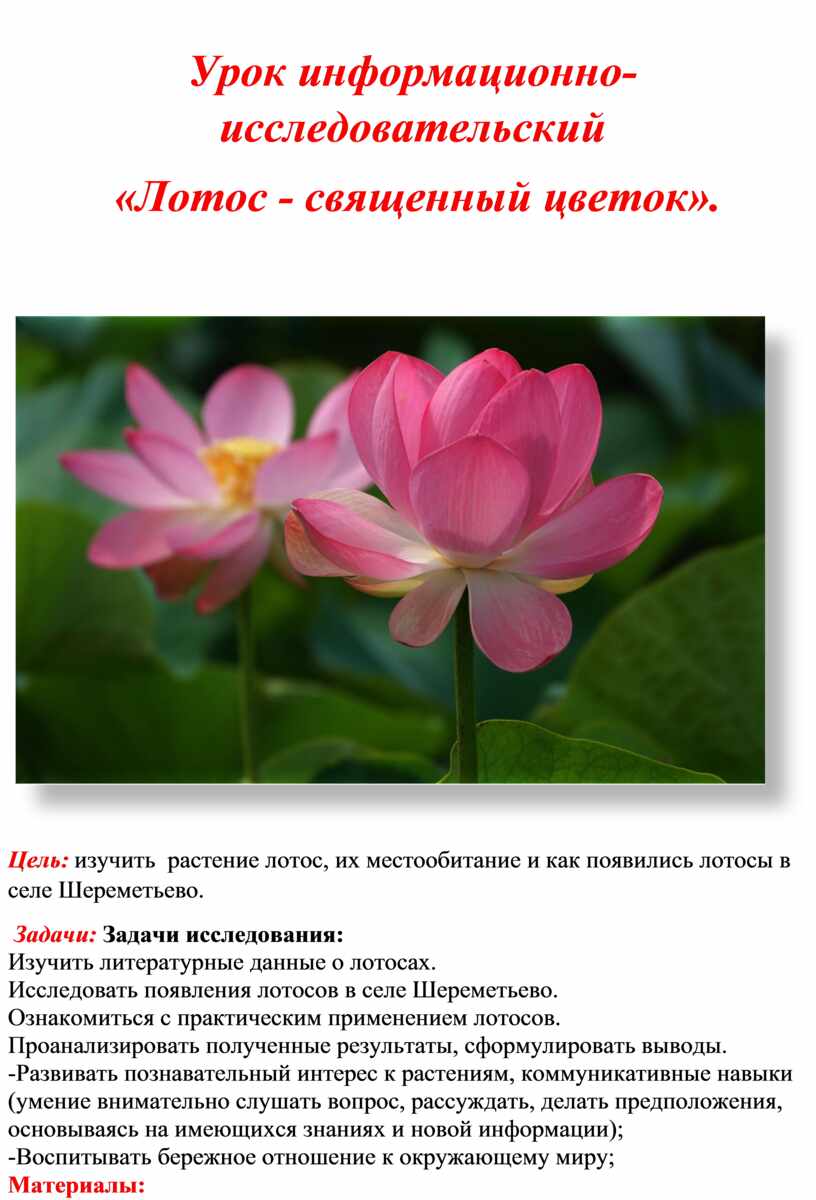Цель: изучить растение лотос, их местообитание и как появились лотосы в селе Шереметьево.