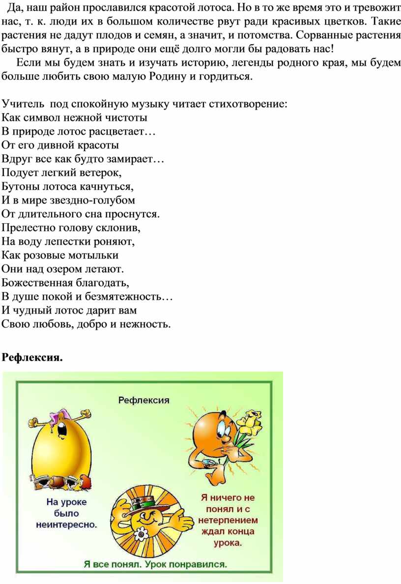 Да, наш район прославился красотой лотоса. Но в то же время это и тревожит нас, т. к. люди их в большом количестве рвут ради красивых цветков. Такие растения не дадут плодов и семян, а значит, и потомства. Сорванные растения быстро вянут, а в природе они ещё долго могли бы радовать нас!