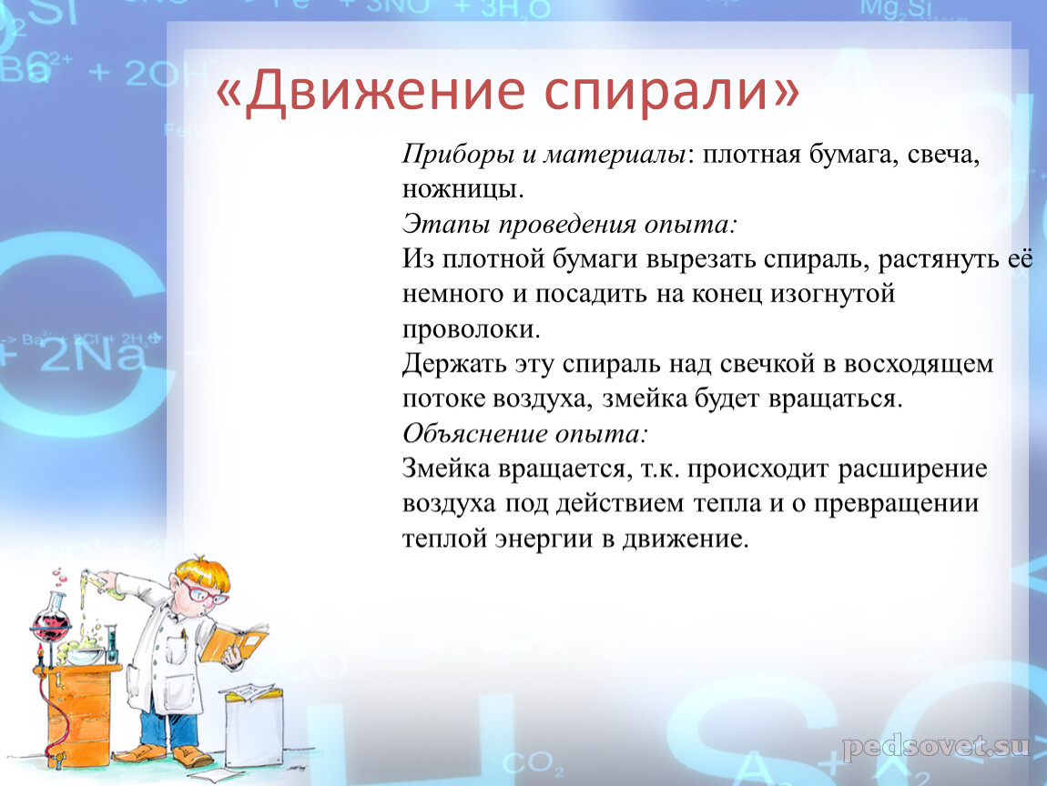 Змейка вращается, т.к. происходит расширение воздуха под действием тепла и о превращении теплой энергии в движение.