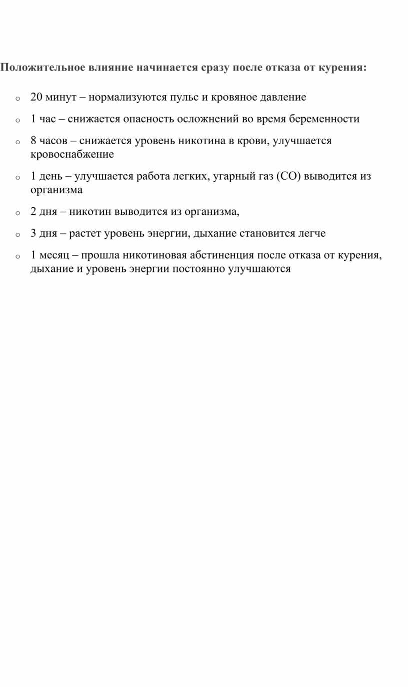 Положительное влияние начинается сразу после отказа от курения.