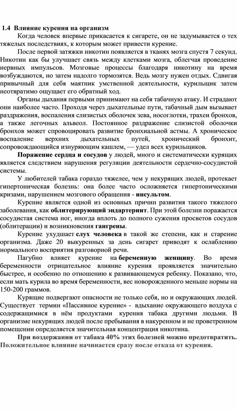 1.4 Влияние курения на организм