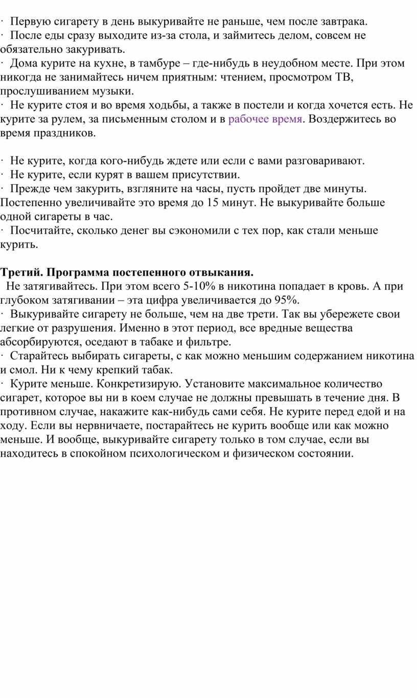 · Первую сигарету в день выкуривайте не раньше, чем после завтрака.