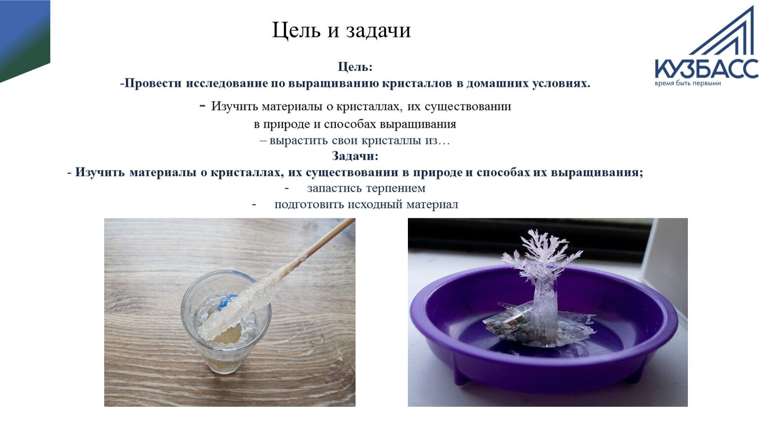 - Изучить материалы о кристаллах, их существовании в природе и способах их выращивания;