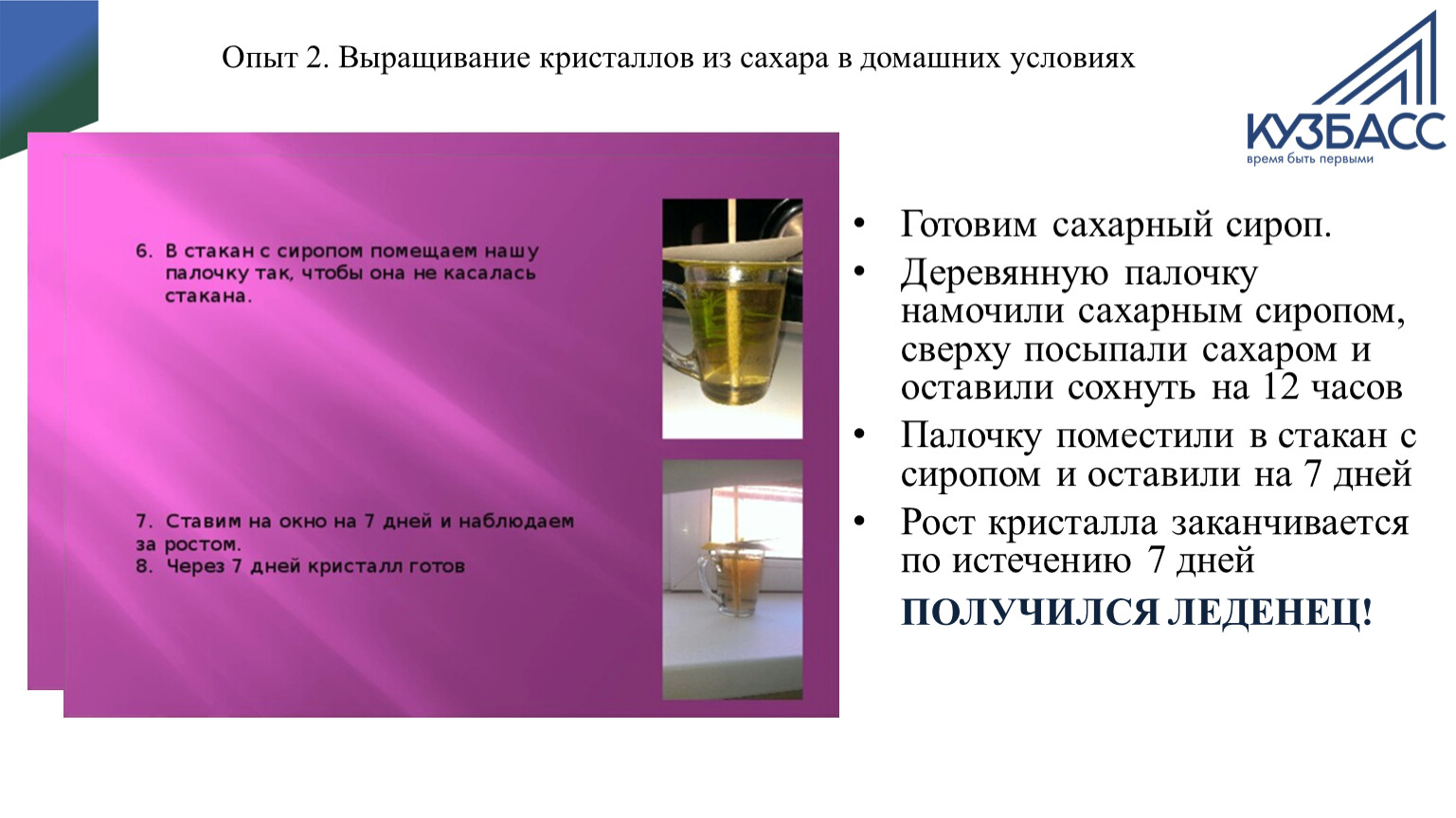 Опыт 2. Выращивание кристаллов из сахара в домашних условиях