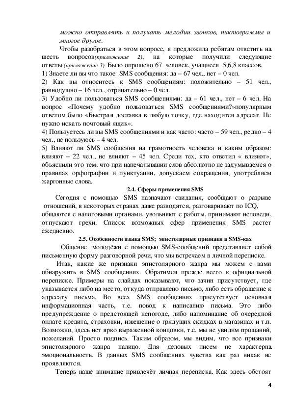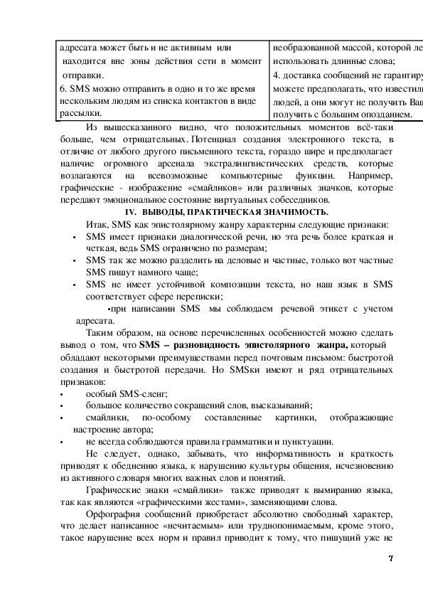 вывод о том, что SMS – разновидность эпистолярного жанра, который
