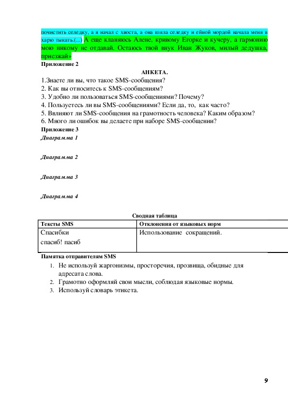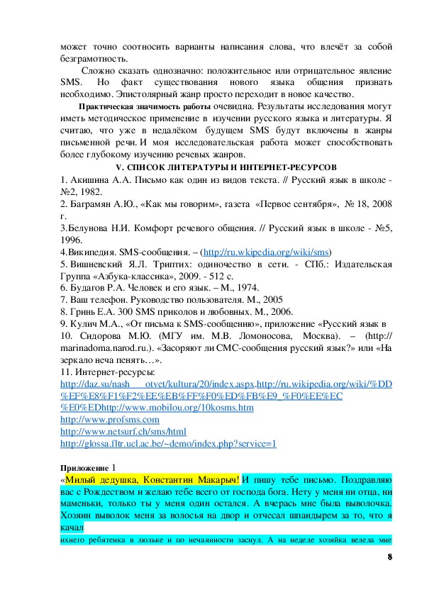 9. Кулич М.А., «От письма к SMSсообщению», приложение «Русский язык в