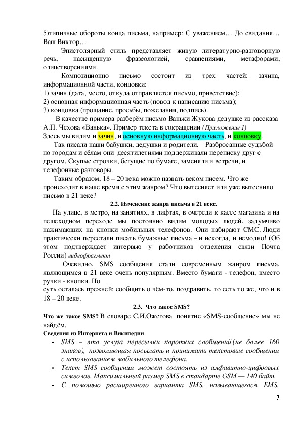 описание SMS сообщении как новой разновидности эпистолярного жанра. В