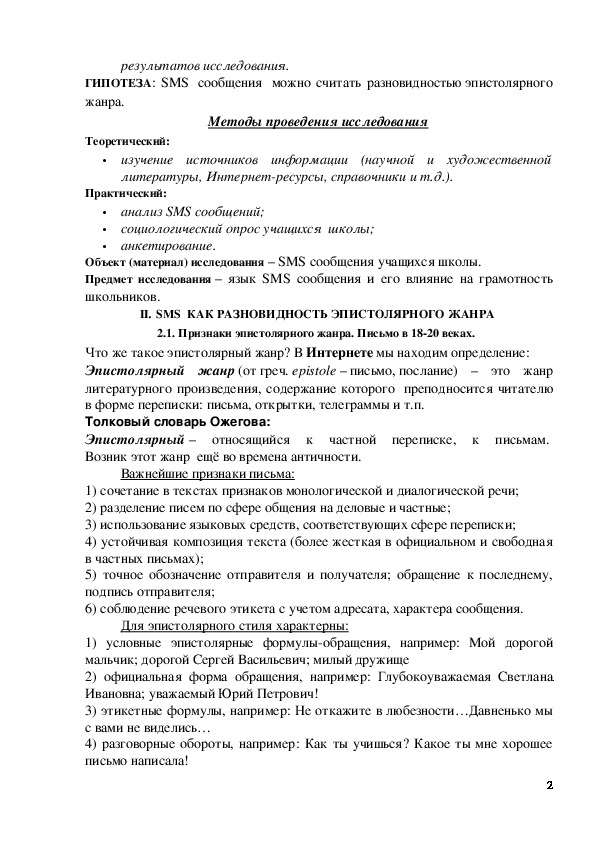 II. SMS КАК РАЗНОВИДНОСТЬ ЭПИСТОЛЯРНОГО ЖАНРА