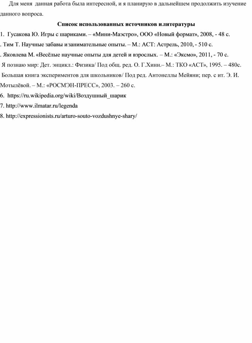 Результаты моей работы подтвердили гипотезу о том, что воздушный шарик является бесценным подручным материалом и предметом для наблюдения и постановки различных опытов.
