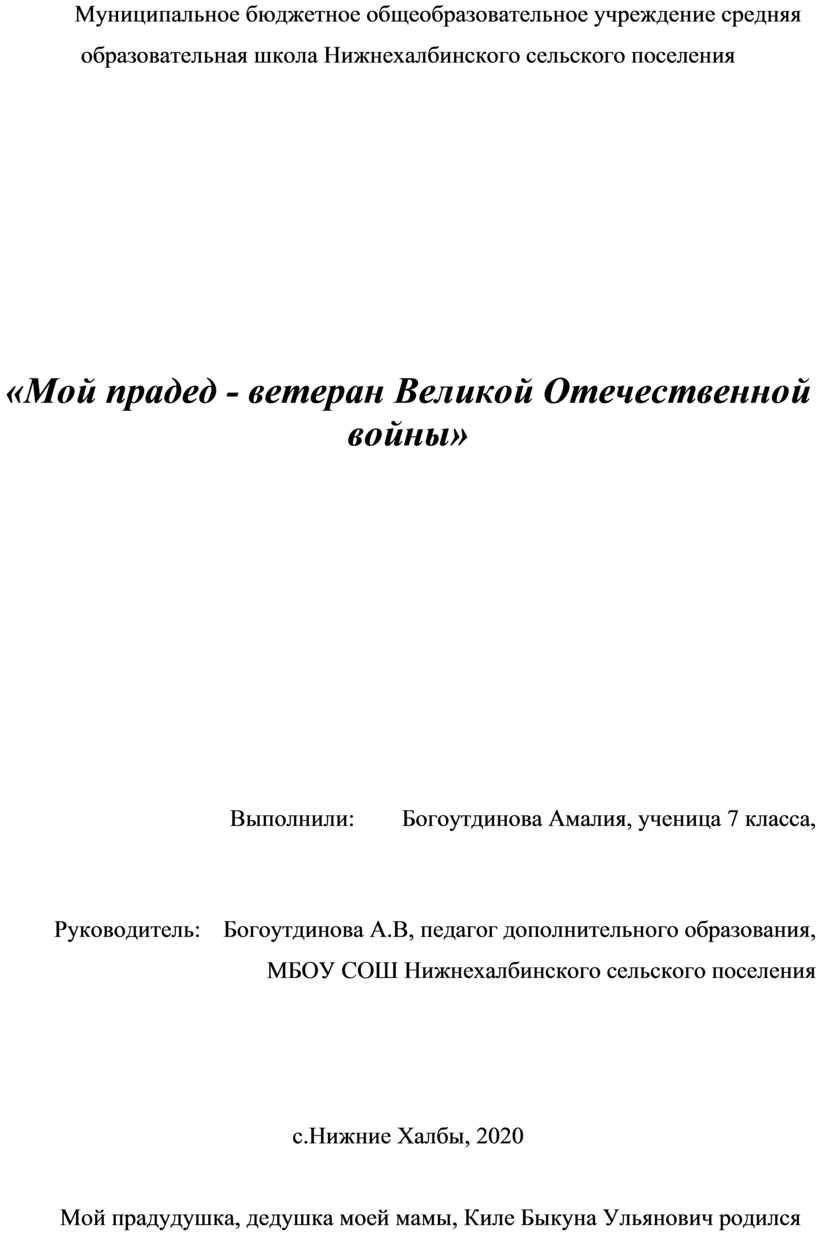 «Мой прадед - ветеран Великой Отечественной войны»