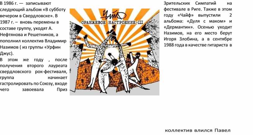 милиции, вновь воссоединились в 1984 году создав группу «Чайф».