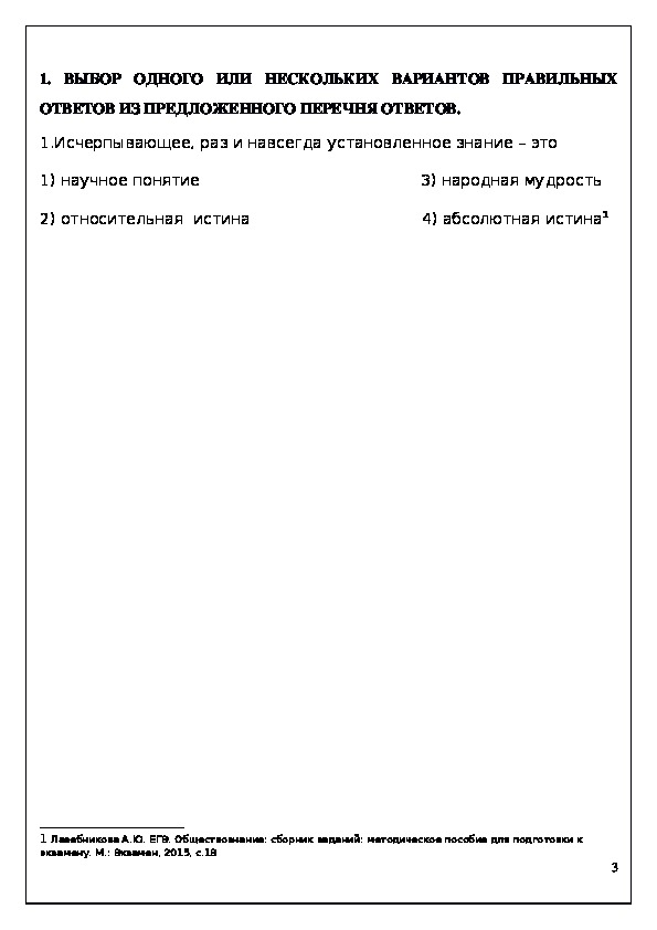 1. ВЫБОР ОДНОГО ИЛИ НЕСКОЛЬКИХ ВАРИАНТОВ ПРАВИЛЬНЫХ