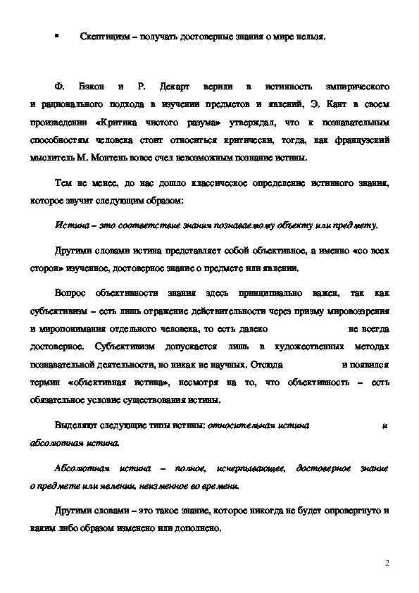 мыслитель М. Монтень вовсе счел невозможным познание истины.