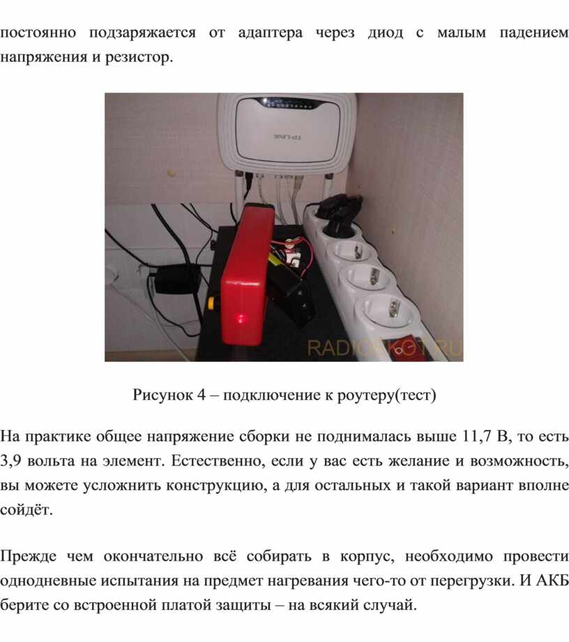 Возможно возникнет вопрос: «зачем собирать отдельный мини бесперебойник если можно воспользоваться компьютерным UPS?» Дело в том, что при отключении света вряд ли получится долго сидеть в домашнем ПК – проще временно перейти на смартфон. К тому же большой источник питания даже на холостом ходу потребляет пол Ампера, что сравнимо с нагрузкой самого роутера.