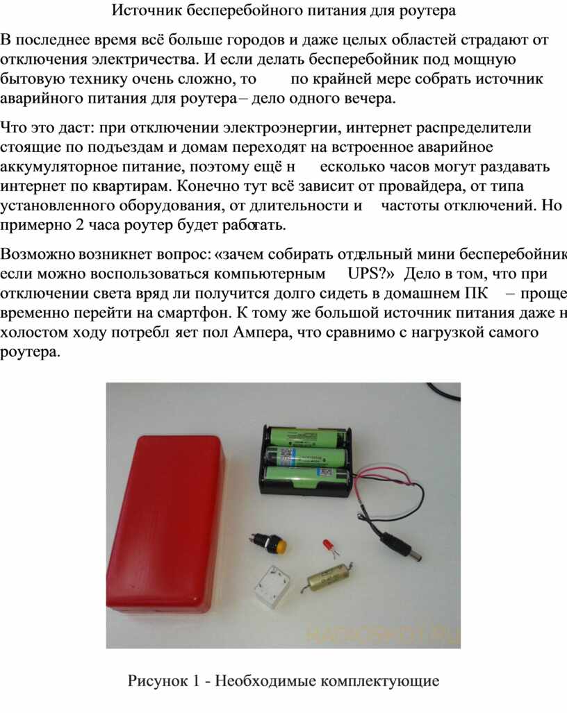 В последнее время всё больше городов и даже целых областей страдают от отключения электричества. И если делать бесперебойник под мощную бытовую технику очень сложно, то по крайней мере собрать источник аварийного питания для роутера – дело одного вечера.