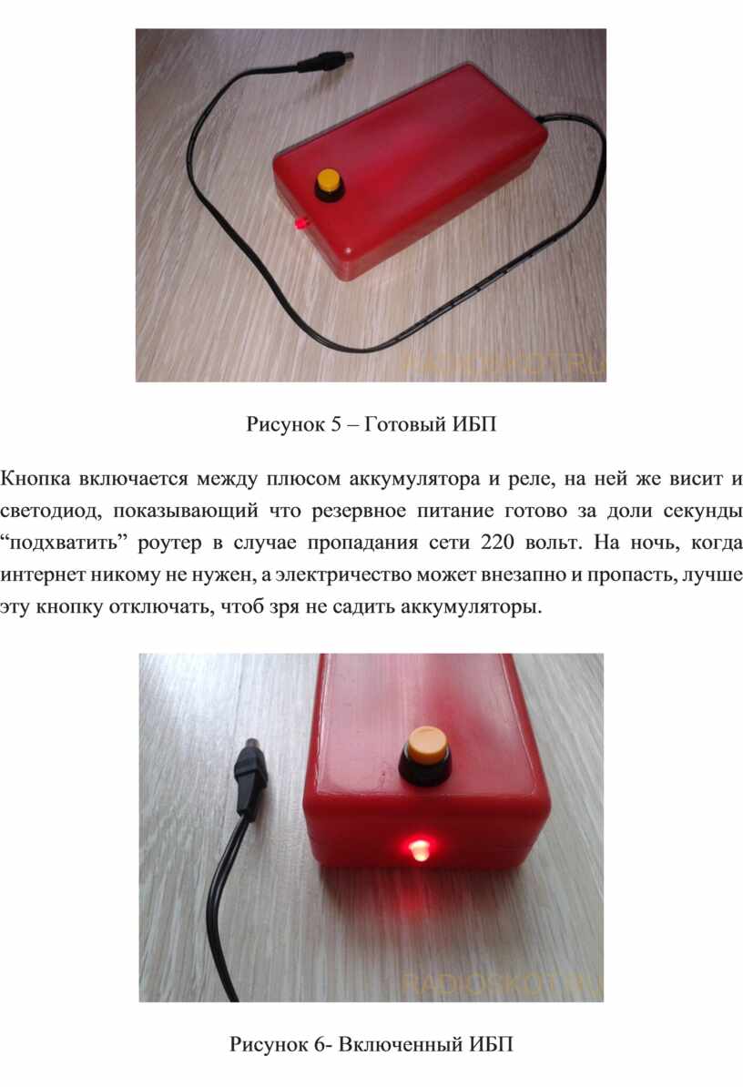 Кнопка включается между плюсом аккумулятора и реле, на ней же висит и светодиод, показывающий что резервное питание готово за доли секунды “подхватить” роутер в случае пропадания сети 220 вольт. На ночь, когда интернет никому не нужен, а электричество может внезапно и пропасть, лучше эту кнопку отключать, чтоб зря не садить аккумуляторы.