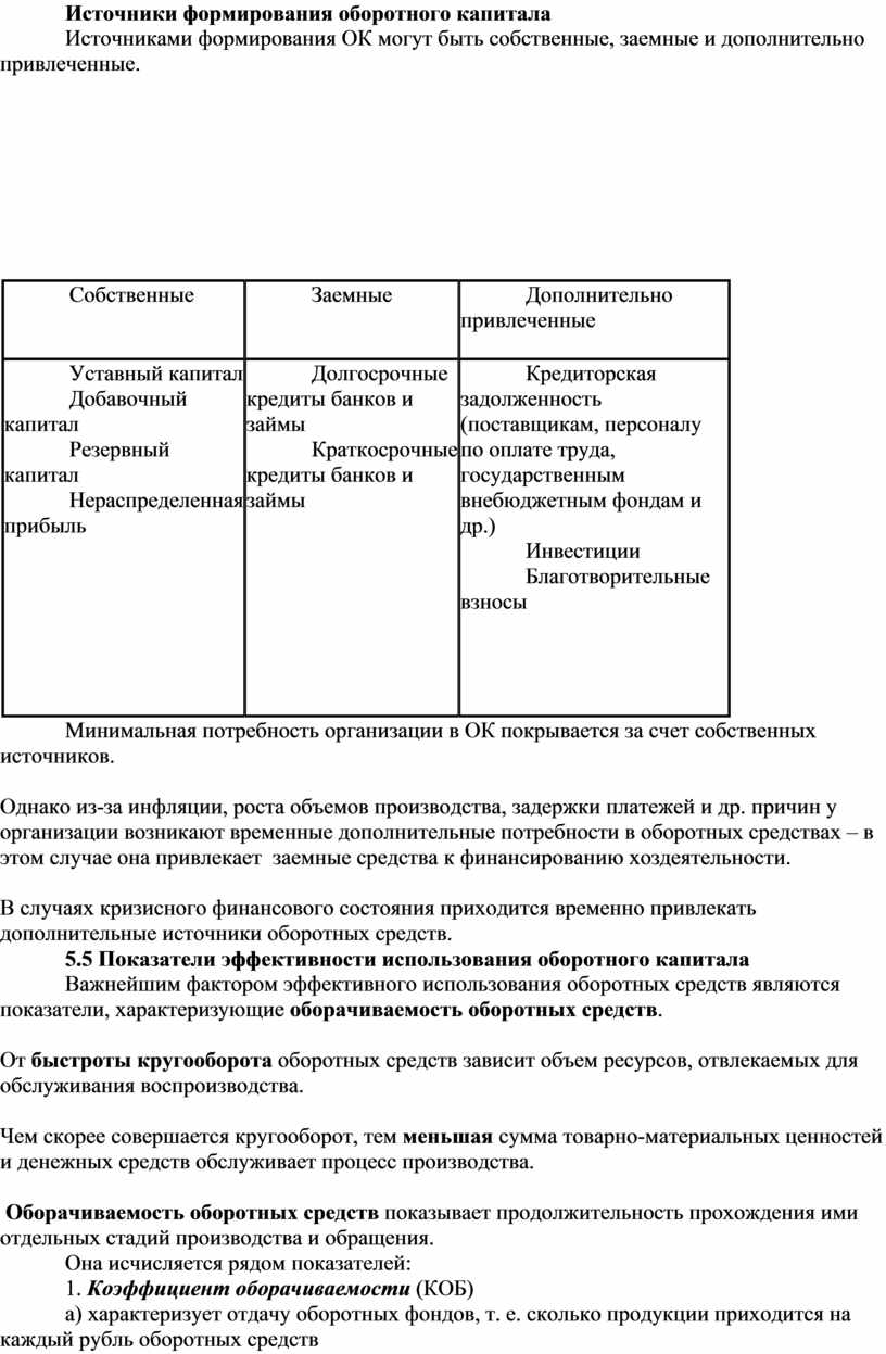 Источниками формирования ОК могут быть собственные, заемные и дополнительно привлеченные.