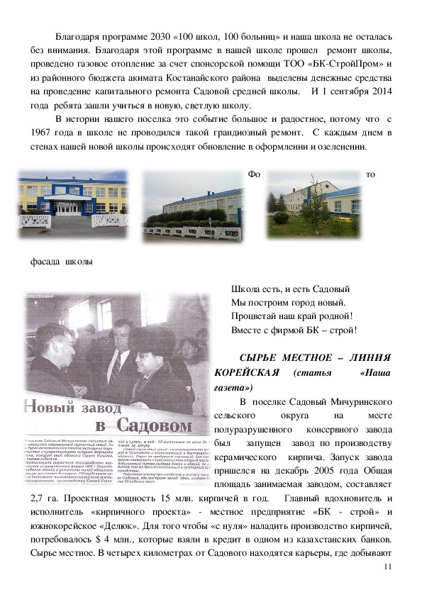учащаяся 10го «Б» класса собирала материал по истории села Садовое. Она