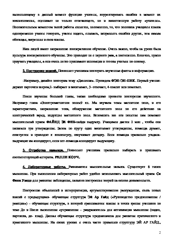 применяю на уроках физики обучающие структуры по профессиональному развитию