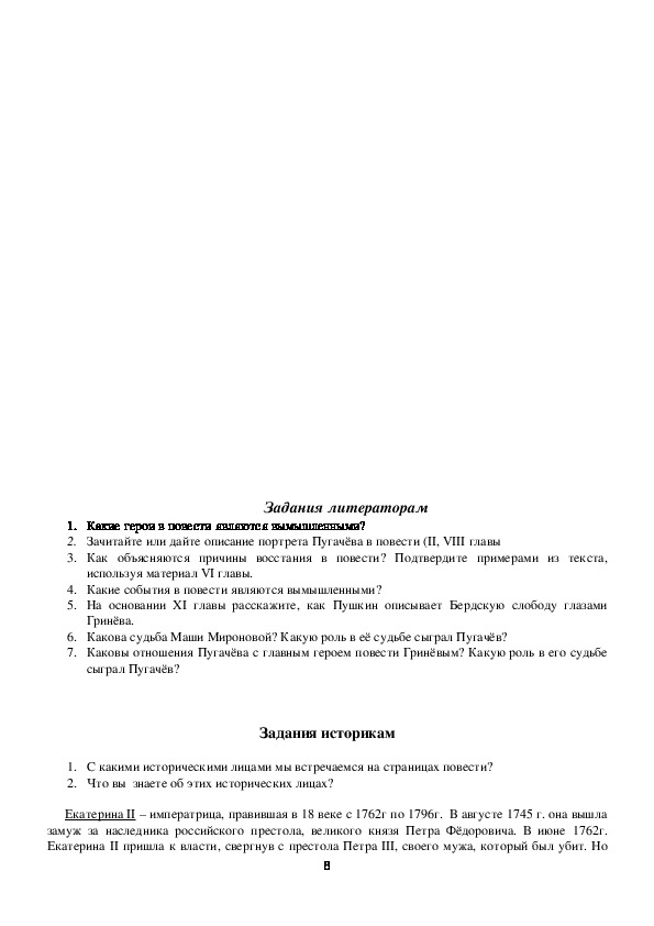 4. Учитель литературы: Исторические деятели изображены в «Капитанской дочке» в