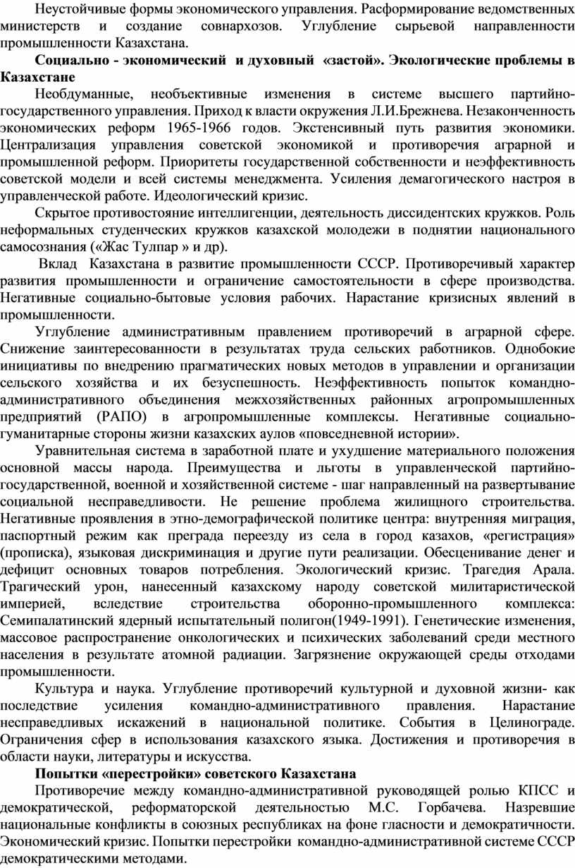 Противоречия и последствия советских реформ в Казахстане во второй половины ХХ века для Казахстана |