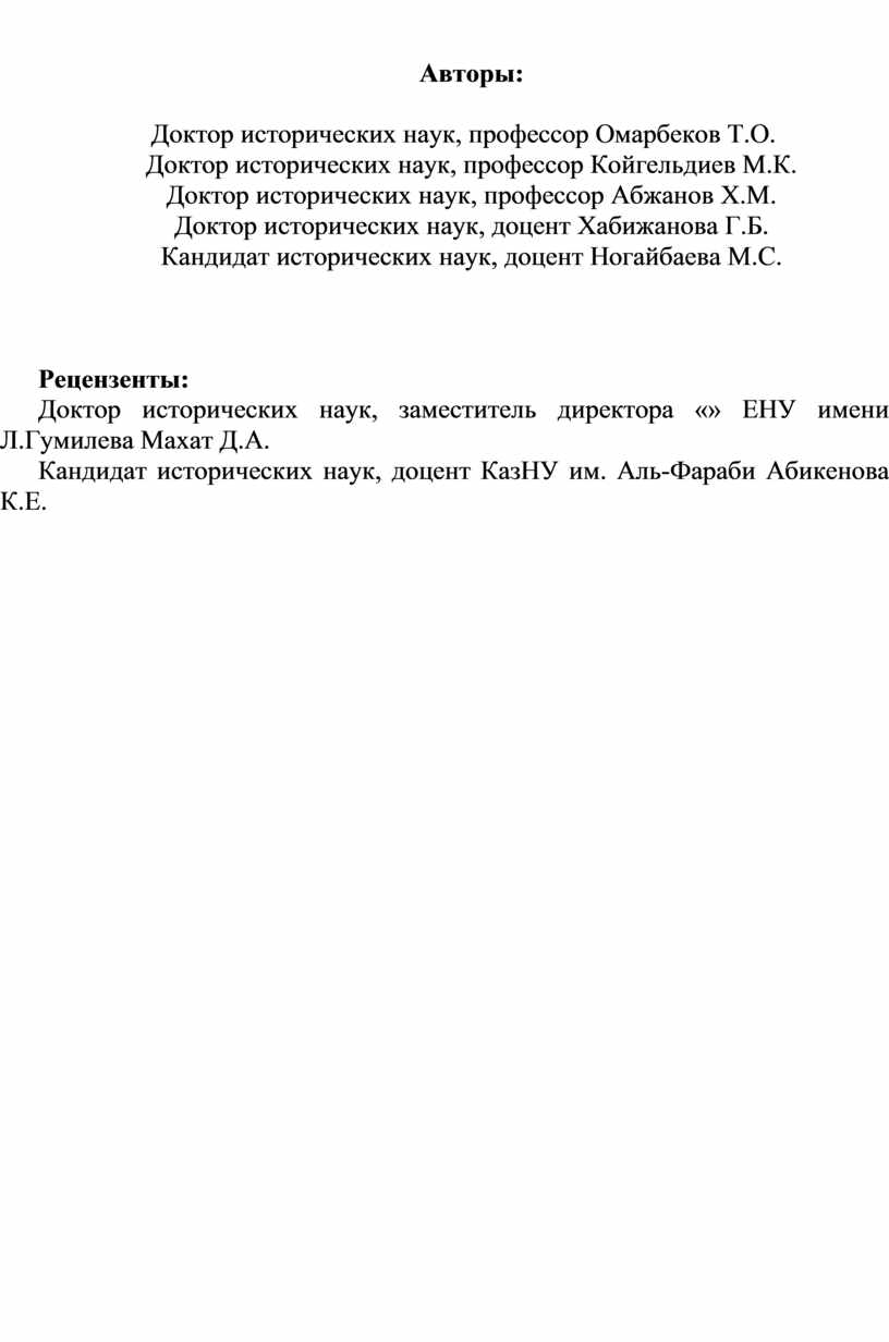 Доктор исторических наук, профессор Омарбеков Т.О.