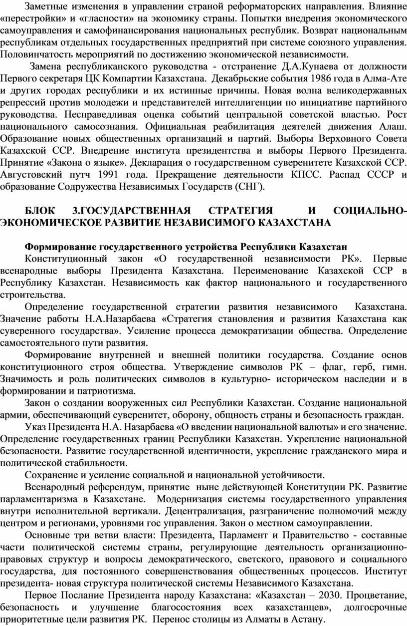 Блок 1 КАЗАХСТАН НА ПУТИ К НЕЗАВИСИМОСТИ: ФАЗЫ РАЗВИТИЯ И ИДЕИ НАЦИОНАЛЬНОГО СТРОИТЕЛЬСТВА
