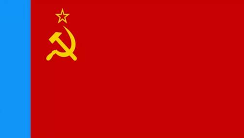 В 1954 году флаг РСФСР изменился. Основным цветом полотнища остался красный. Вдоль древка была пущена синяя вертикальная полоса. А в крыже на красной части полотнища поместили государственную эмблему СССР - желтые серп и молот под контурной пятиконечной звездой.