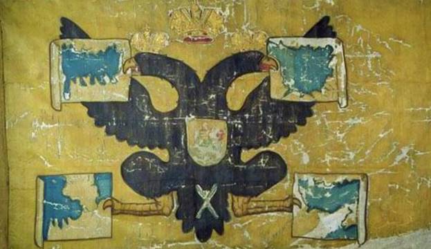 Строительство первых морских кораблей в России началось по указу Алексея Михайловича. К 1669 году были построены трехмачтовый 22-пушечный корабль «Орел», яхта, два шлюпа и бот. Для кораблей необходимы были флаги. И 9 апреля 1668 года состоялся указ, об отпуске для строящихся судов большого количества материй белого, синего и красного цветов. Нам неизвестно, как именно выглядели флаги, построенные из полученных тканей.