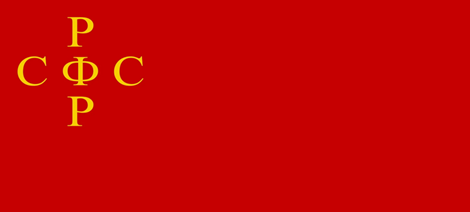 Первый флаг РСФСР был утвержден в июле 1918 года. В окантованном желтым кантом крыже на красном фоне располагались крестообразно буквы «РСФСР», а под ними надпись, расшифровывающая данную аббревиатуру: «Российская советская федеративная социалистическая республика». Этот флаг был принят как единый: и государственный, и военный, и морской (в том числе военно-морской). В том же 1918 году флаг был изменен: аббревиатура РСФСР была расположена в одну строку и начертана оригинальным шрифтом. В таком виде флаг просуществовал до 1937 года.