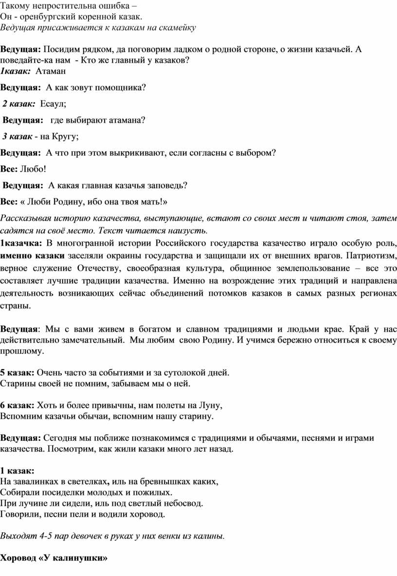 Ведущая: Посидим рядком, да поговорим ладком о родной стороне, о жизни казачьей. А поведайте-ка нам - Кто же главный у казаков?