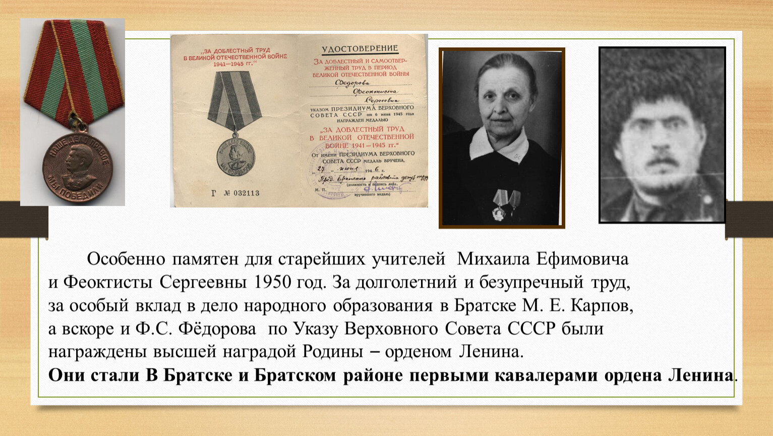и Феоктисты Сергеевны 1950 год. За долголетний и безупречный труд,