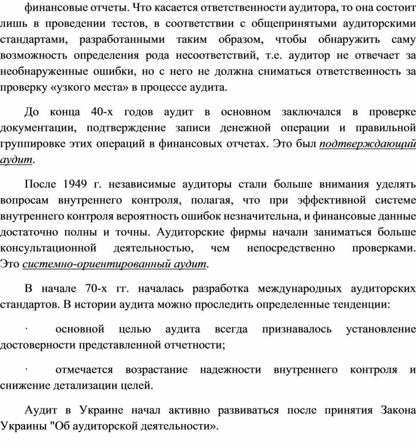 В начале 70-х гг. началась разработка международных аудиторских стандартов. В истории аудита можно проследить определенные тенденции: