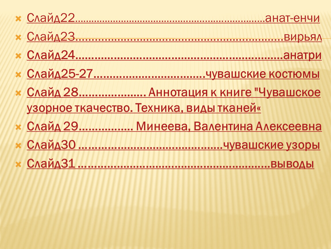 Слайд 28……………..…. Аннотация к книге "Чувашское узорное ткачество. Техника, виды тканей«