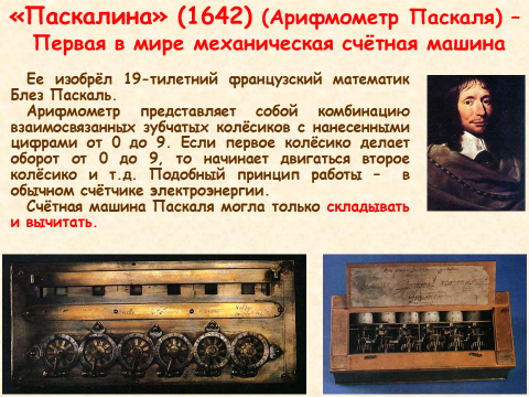 Ее изобрёл 19-тилетний французский математик Блез Паскаль.
